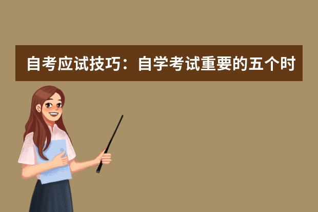 考生除记住各门课程的考试时间外,还要记住5个考试时间:开考前20分钟,开考前15分钟,开考前5分钟,开考后15分钟,开考后60分钟。考生最好能在开考前20分钟到考场,为自己作好充裕的考前准备。