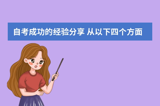 自考成为越来越多社会在职人员选择的学历提升方式,每年的报考人数都在增加。自考的学习方式和学习时间的灵活性都十分适合在职考生,上班族可以在不影响正常工作的同时学习。但是自考的难度比较大,要学习的科目有十几门,并且耗时久,对考生的精力和生活都有很大的压力。为减轻考生的压力,这里为大家介4点考试成功的经验。